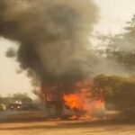 मुख्य मार्ग पर ट्रेलर हादसा: तीन वाहन टकराए, भीषण आग में 1 की मौत, 1 गंभीर