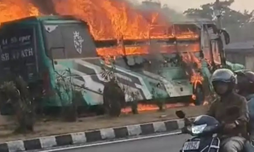 चलती लग्जरी बस बनी आग का गोला! रायपुर आ रही शिवनाथ बस धू-धू कर जली, यात्रियों में मची अफरा-तफरी